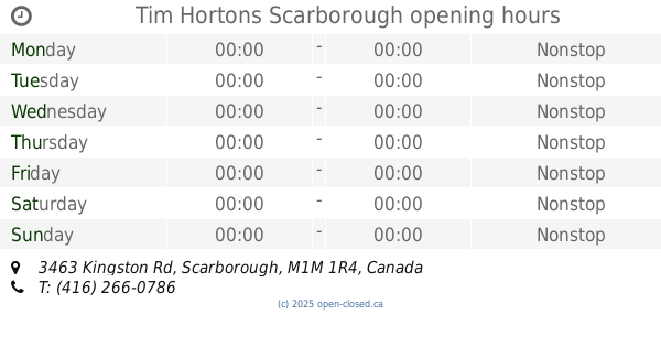 It is also possible to : Edit these OPENING HOURS of Restaurant Tim Hortons In Scarborough, 3463 Kingston Rd,